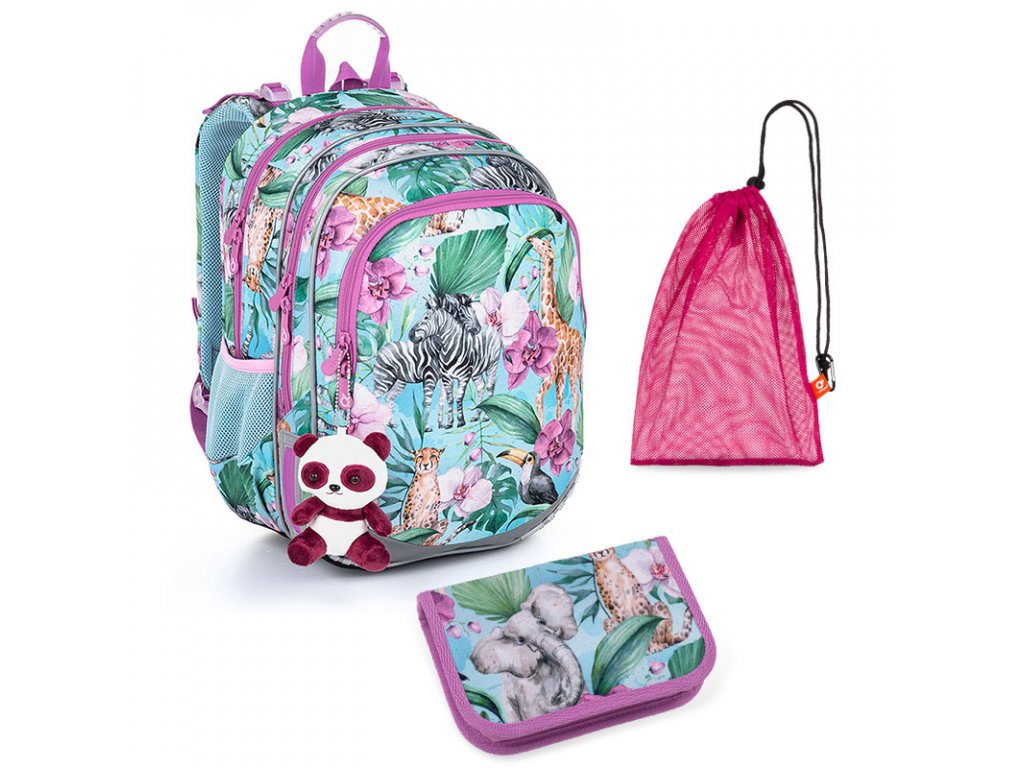 Cenově zvýhodněná školní sada pro školačku v 1.- 4. třídě. Součástí setu jsou tyto produkty: ELLY 23004 - Školní batoh Safari, PENN 23004 - Dvouklopový školní penál, ZUZA 19045 - Pytlík na přezůvkyDoplňkové parametry