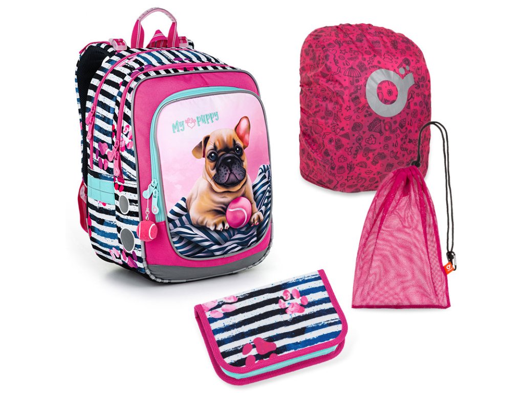Cenově zvýhodněná školní sada pro školačku v 1.-3. třídě. Součástí setu jsou tyto produkty: ENDY 22005 - Lehký batoh s buldočkem, PENN 22005 - Dvouklopový školní penál, ZIGI 17002 - Pláštěnka na batoh, ZUZA 19045 - Pytlík na přezůvkyDoplňkové parametry
