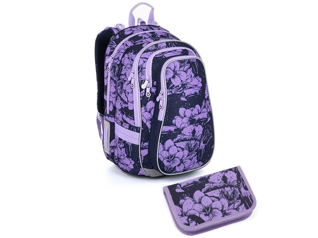 Cenově zvýhodněná školní sada pro školačku ve 2.-5. třídě. Součástí setu jsou tyto produkty: LYNN 23008 - Školní batoh s květy, PENN 23008 - Dvouklopový školní penálDoplňkové parametry